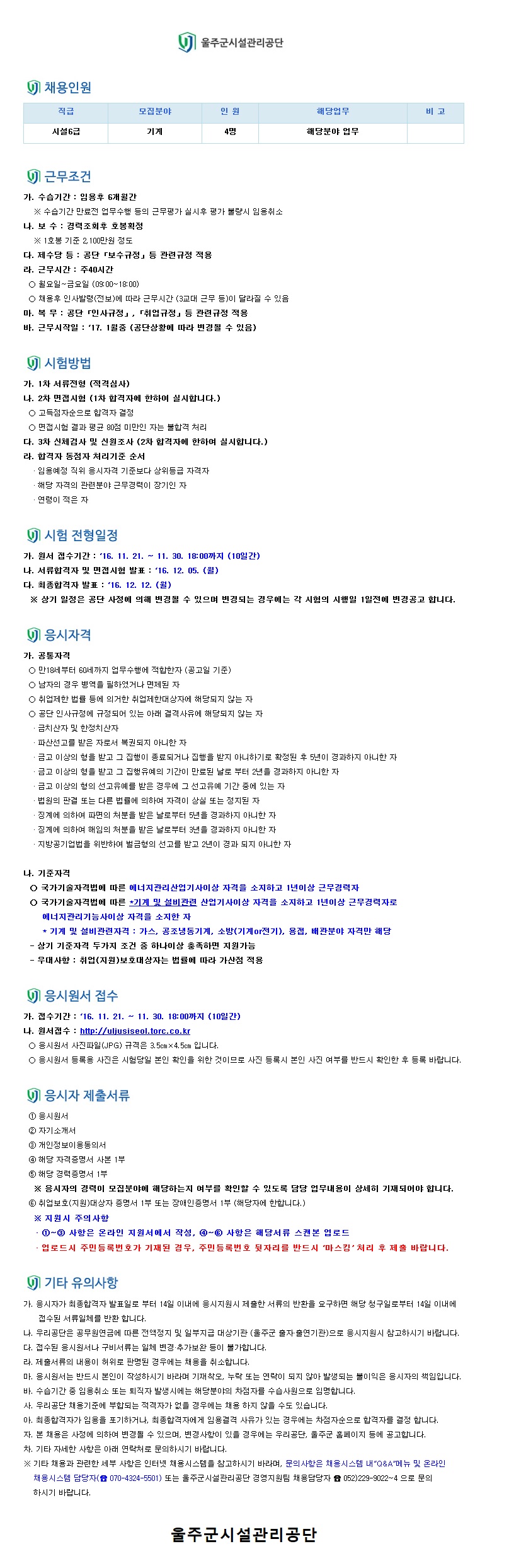 [¿ïÁÖ±º½Ã¼³°ü¸®°ø´Ü] Á¤±ÔÁ÷ °æ·Â»ç¿ø(±â°è) ä¿ëÀç°ø°í(~11.30)