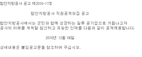 ÇÔ¾ÈÁö¹æ°ø»ç °ø°í Á¦2016-17È£.hwp
