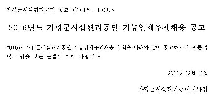 [°¡Æò±º½Ã¼³°ü¸®°ø´Ü] ±â´ÉÀÎÀçÃßõä¿ë °ø°í (~12.19)